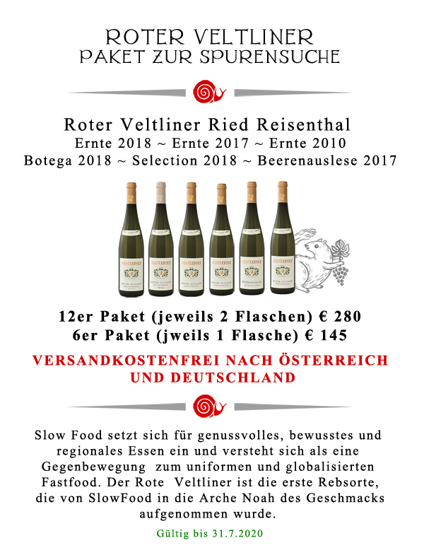 Für all jene die gerne gekommen wären, aber leider keine Zeit haben oder verhindert sind haben wir ein Roter Veltliner Paket geschnürt. Klein und Groß.